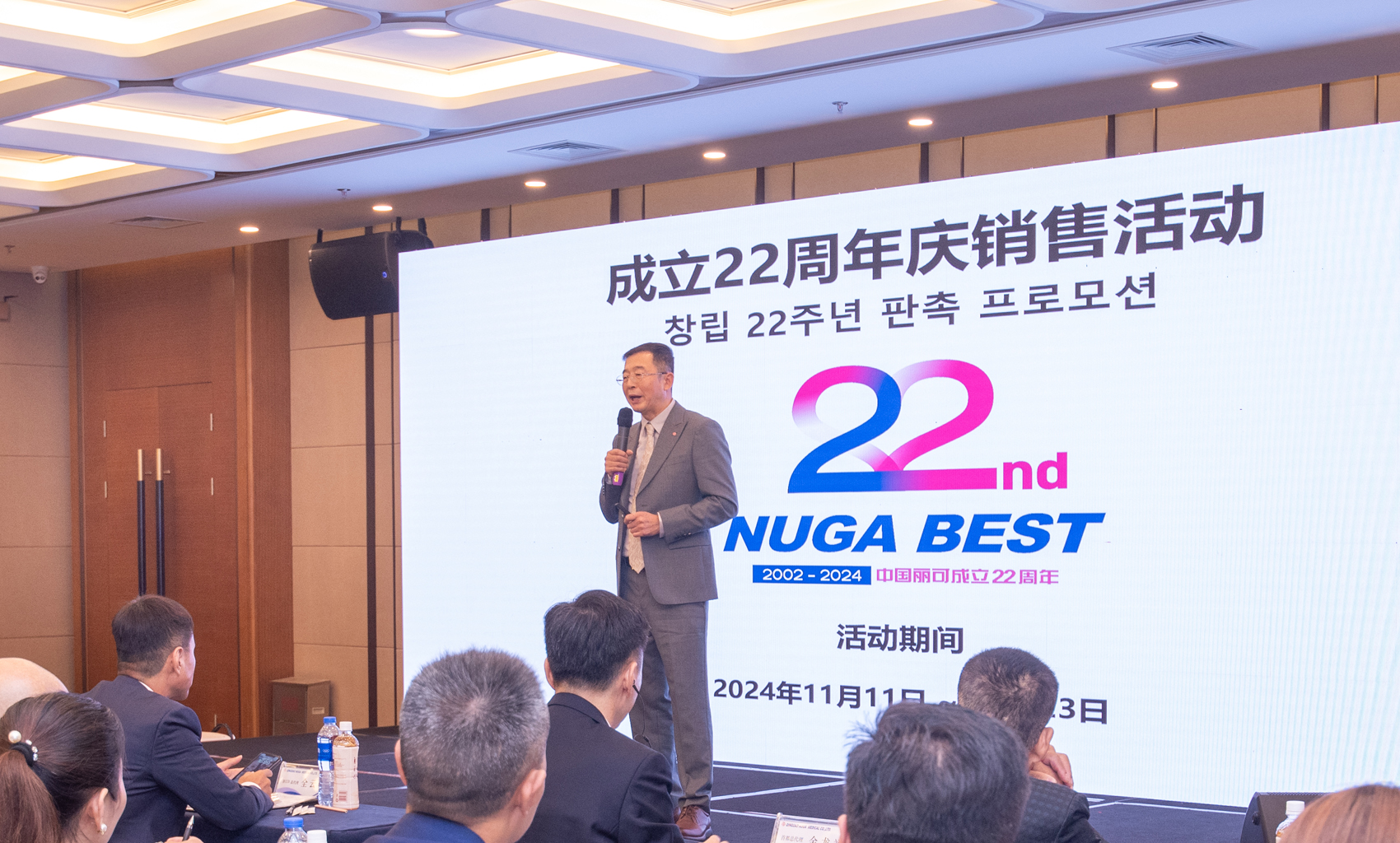 隨后,具永煜室長(zhǎng)對(duì)于BH的增設(shè)現(xiàn)狀進(jìn)行了說(shuō)明,并由金泰山理事公布了麗可22周年的銷(xiāo)售活動(dòng)政策。