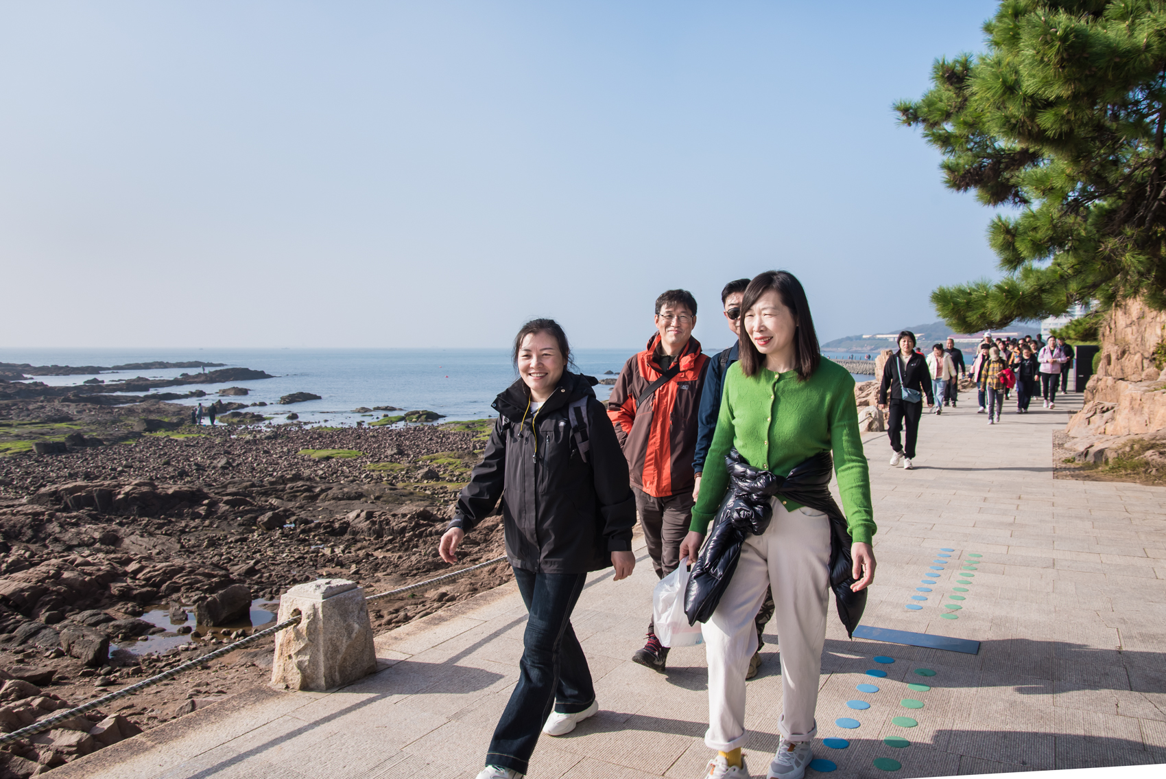 早上九點(diǎn),任職員們在清爽的海風(fēng)中集結(jié),徒步活動(dòng)正式拉開帷幕。一路上,大家沿著蔚藍(lán)海岸前行,感受秋日陽光與海風(fēng)交織的清新氣息。