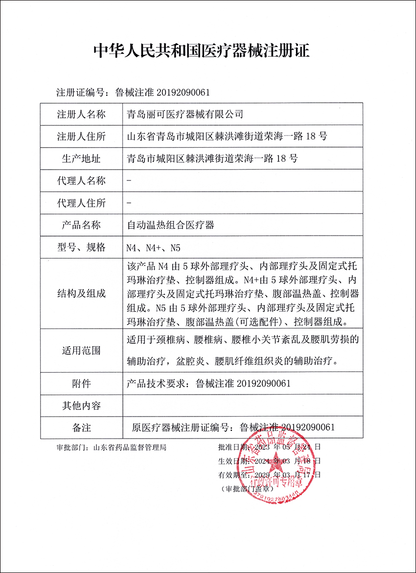 托瑪琳組合治療墊注冊(cè)證