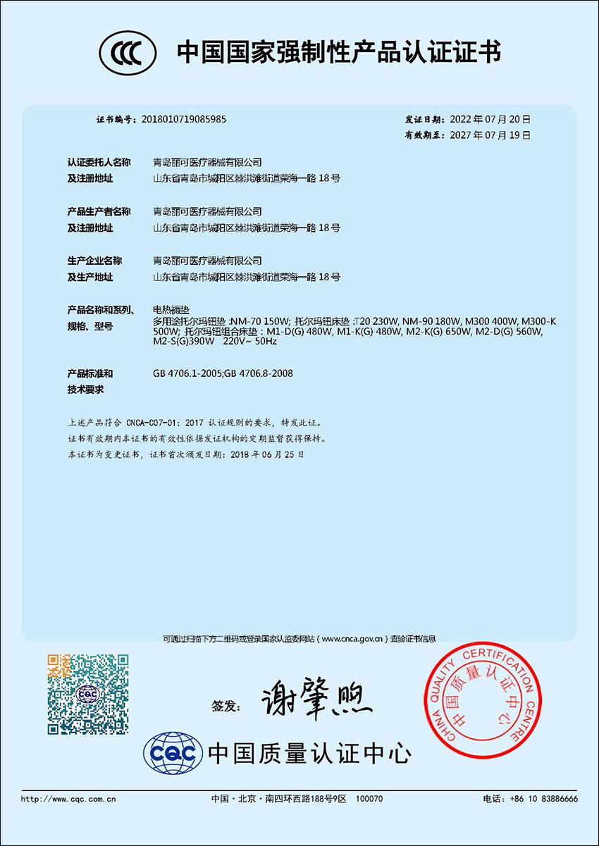 3C認證-電熱褥墊
