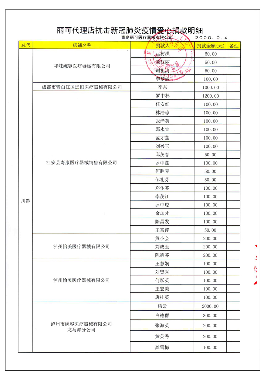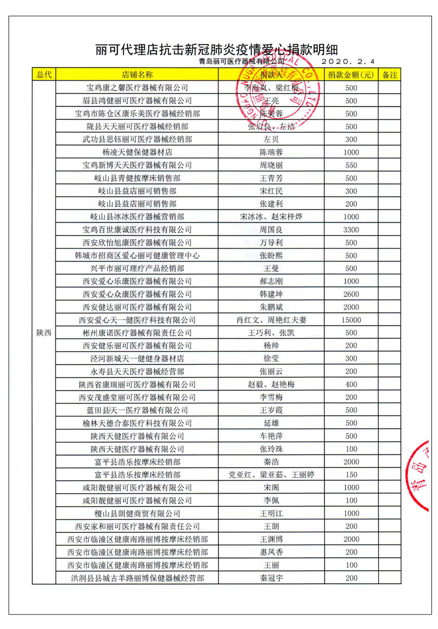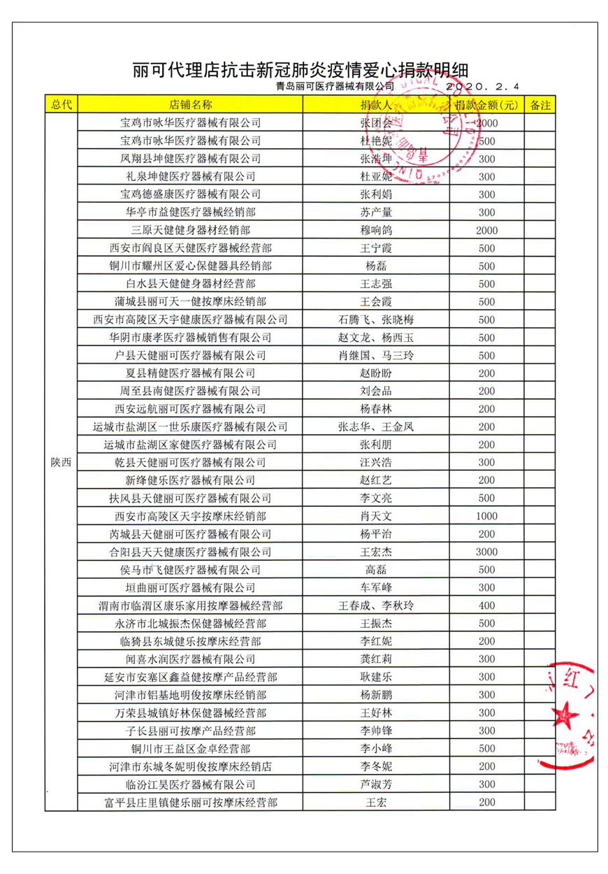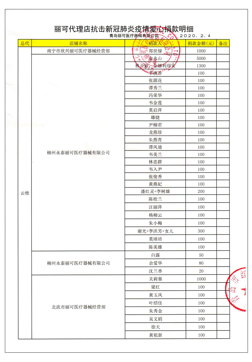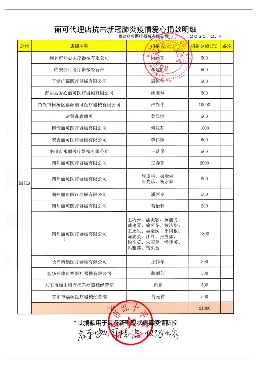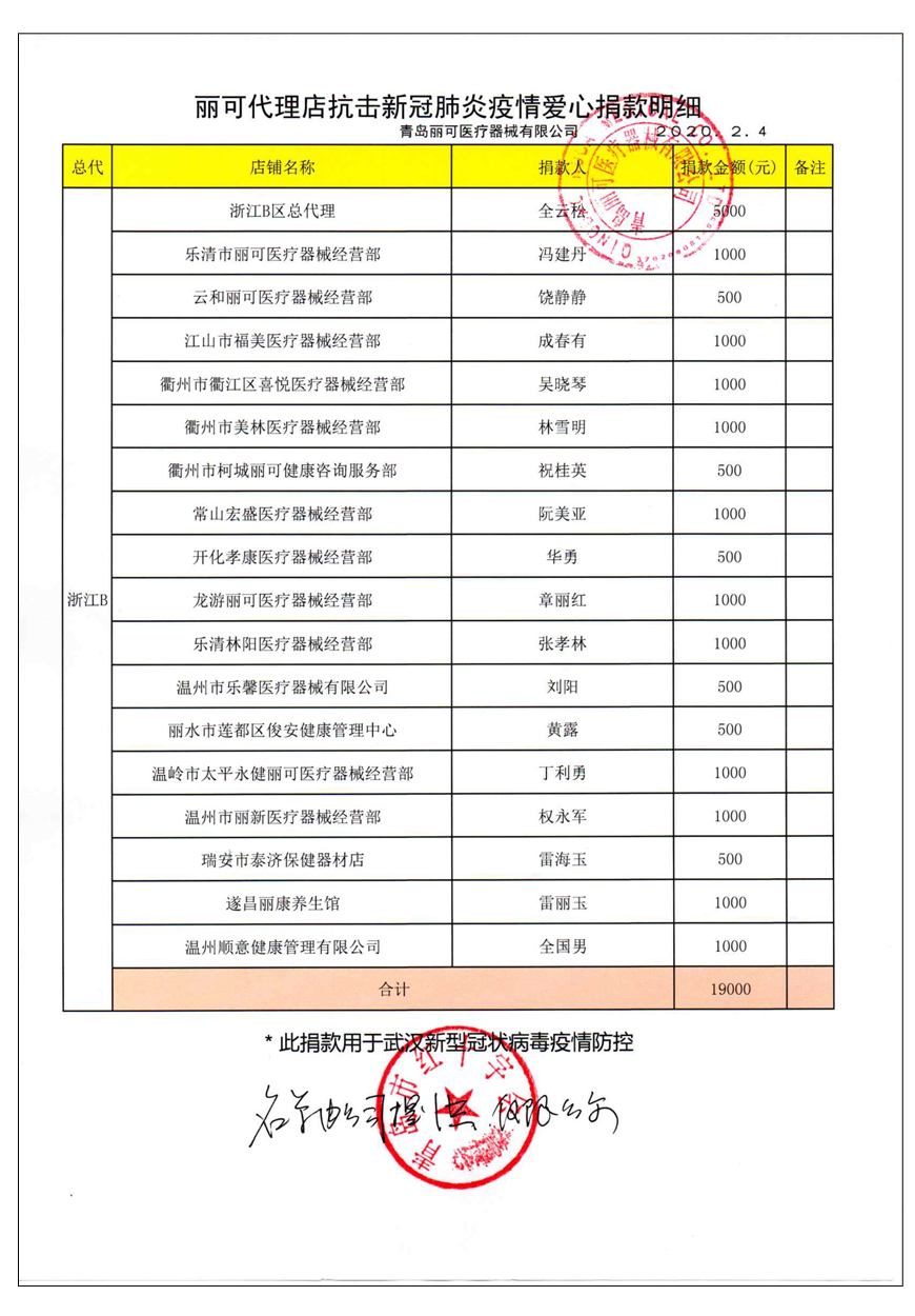越來(lái)越多的人在麗可的號(hào)召下加入到愛(ài)心捐贈(zèng)的隊(duì)伍中來(lái),匯成一股愛(ài)心與力量的強(qiáng)大洪流。2月4日,青島麗可醫(yī)療器械有限公司攜手全國(guó)經(jīng)銷商以及熱心顧客通過(guò)青島市紅十字會(huì)捐款人民幣72萬(wàn)余元,助力湖北省武漢市的疫情防控工作。