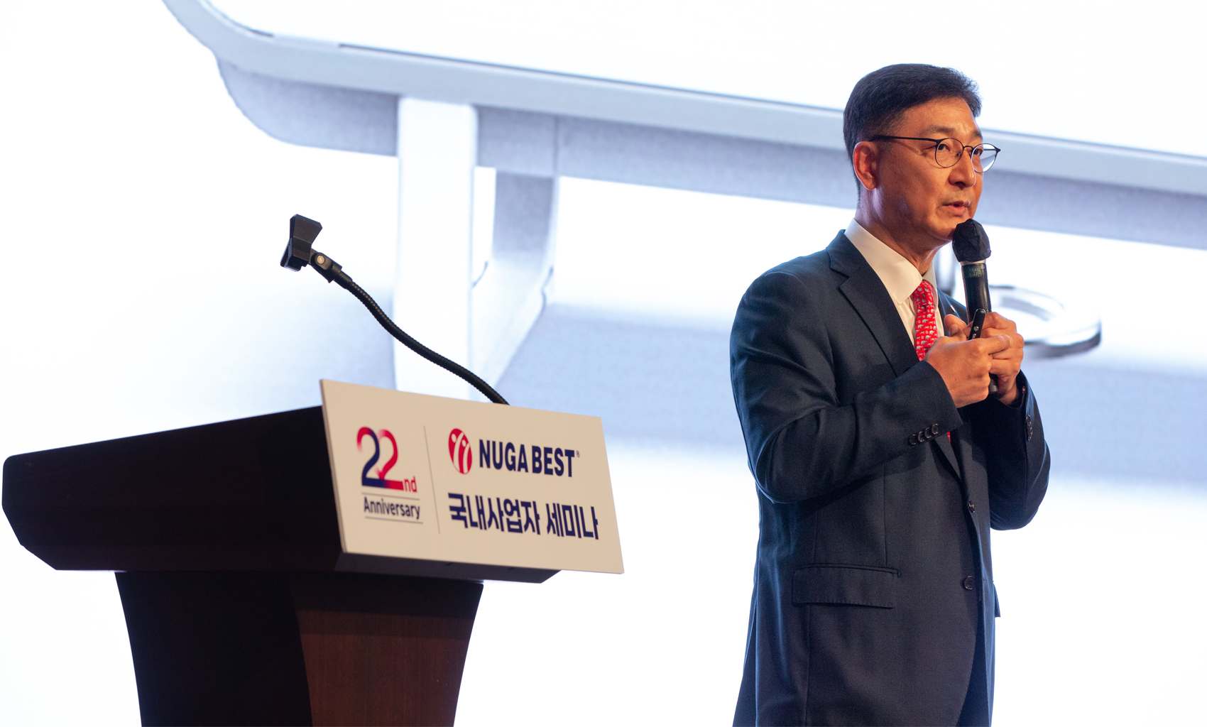 接下來進(jìn)行了韓國國內(nèi)事業(yè)者共慶22周年紀(jì)念儀式。鄭曉敬副會長為儀式致辭,她說:上半年通過與國內(nèi)事業(yè)者的交流,收集并聽取了很多一線事業(yè)者的聲音,總公司將和大家共同攜手,把NUGA BEST發(fā)展為集眾人之所長、公司與個人共同成長、共同收獲的事業(yè)。