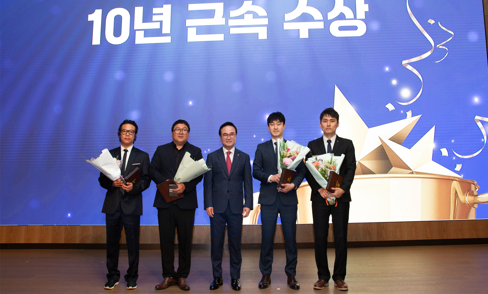 致辭結(jié)束后,曹勝鉉會長親自為“十年老員工”頒發(fā)了感謝牌,感謝他們?yōu)镹UGA BEST健康事業(yè)的發(fā)展貢獻(xiàn)巨大力量,并與他們相約未來十年繼續(xù)攜手共進(jìn)。